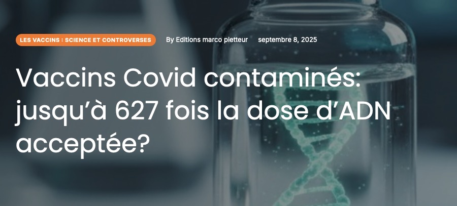Les vaccins Pfizer et Moderna contiennent de l’ADN plasmidique frauduleux[91],[92],[93],[94], dont la forme (double brin circulaire) le rend « compétent pour la réplication », ce qui signifie qu’il peut théoriquement s’intégrer au génome, et donc induire le cancer chez les vaccinés. Nous avons écrit de nombreux articles sur cette découverte, confirmée à ce jour par dix équipes de chercheurs[95] dans le monde, la dernière en date étant une généticienne moléculaire (Dr Soňa Peková)[96] mandatée par le gouvernement slovaque. Les quantités rapportées sont vertigineuses, puisqu’elles atteignent jusqu’à 500 fois le plafond fixé par l’Agence européenne des médicaments, ce qui implique que l’intégration dans le génome peut se faire spontanément, maximisant le risque de cancer.